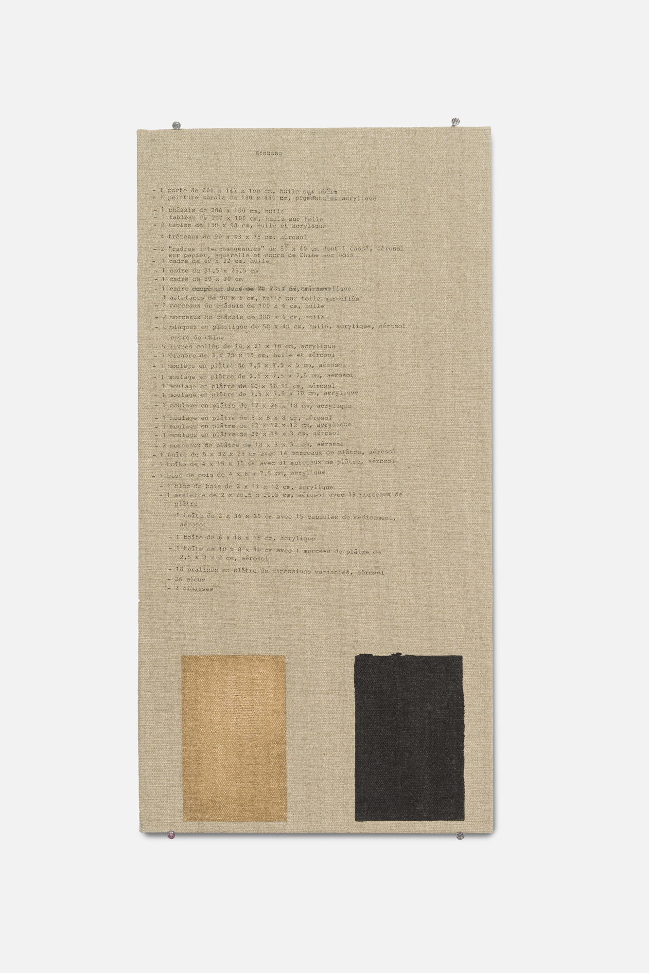 Inventar 3 (Tabula Rasa), 46 x 23 cm, gouache and typewriter on linen, stretched on wood, 2018 ©YAL
