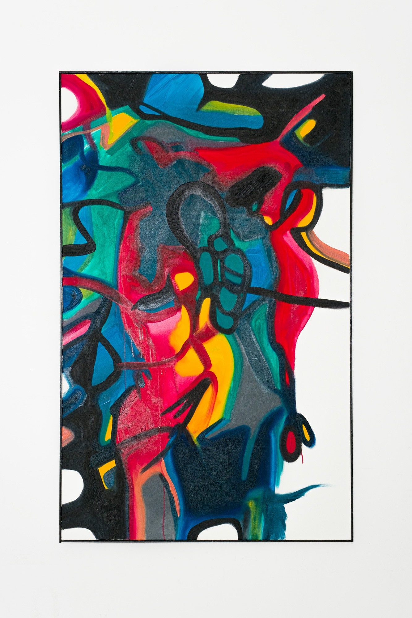 The Desintegration Loops, 140 x 87 x 2.5 cm, oil on canvas, lacquer on wood frame, 2023 ©Danny Leal
