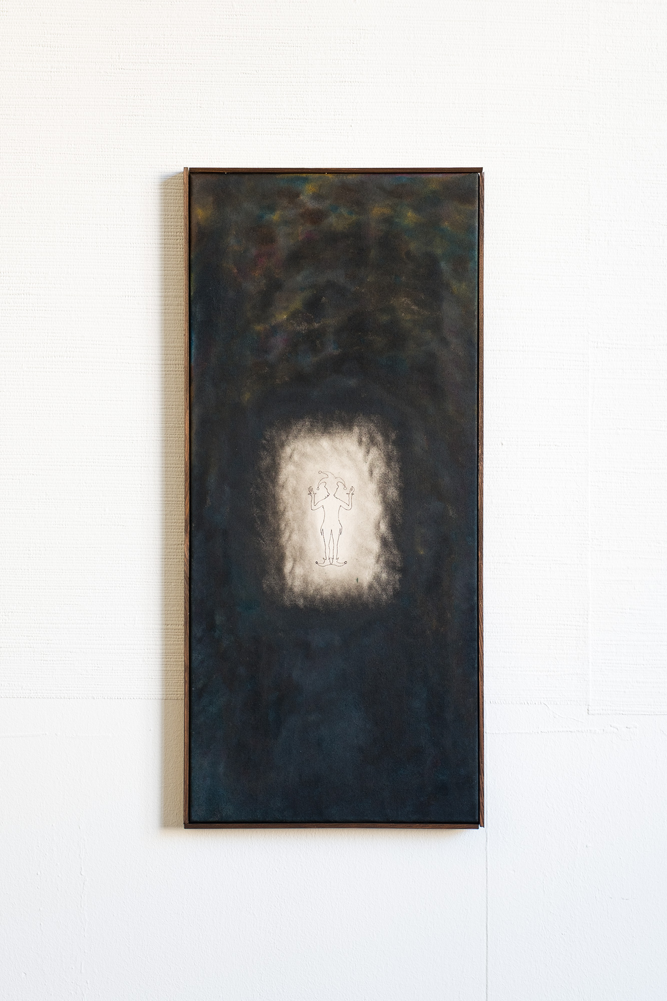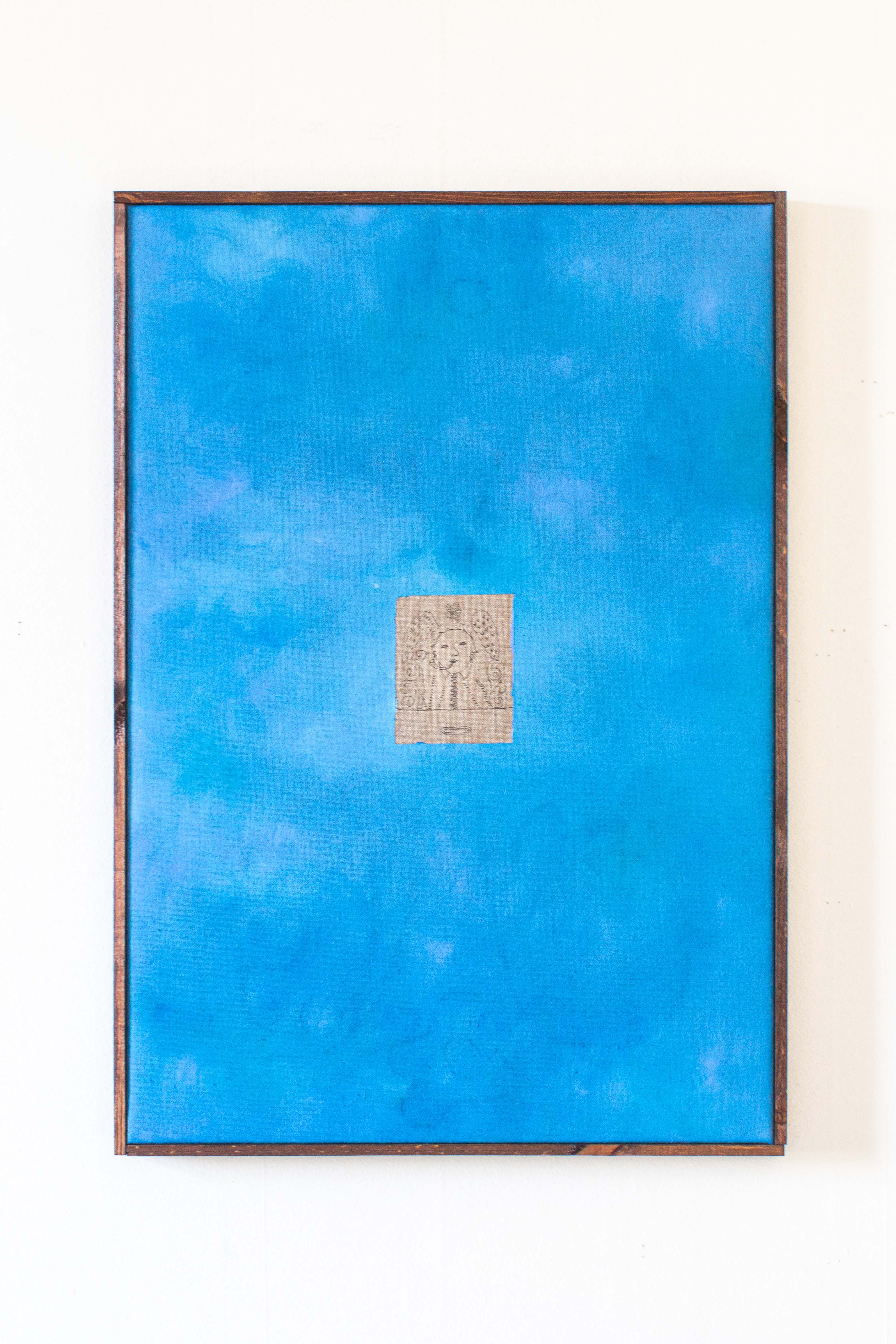 Moment De Flottement, 28 x 18 x 2.5 cm, oil, spray on linen, lacquer on wood frame, 2023 ©Danny Leal