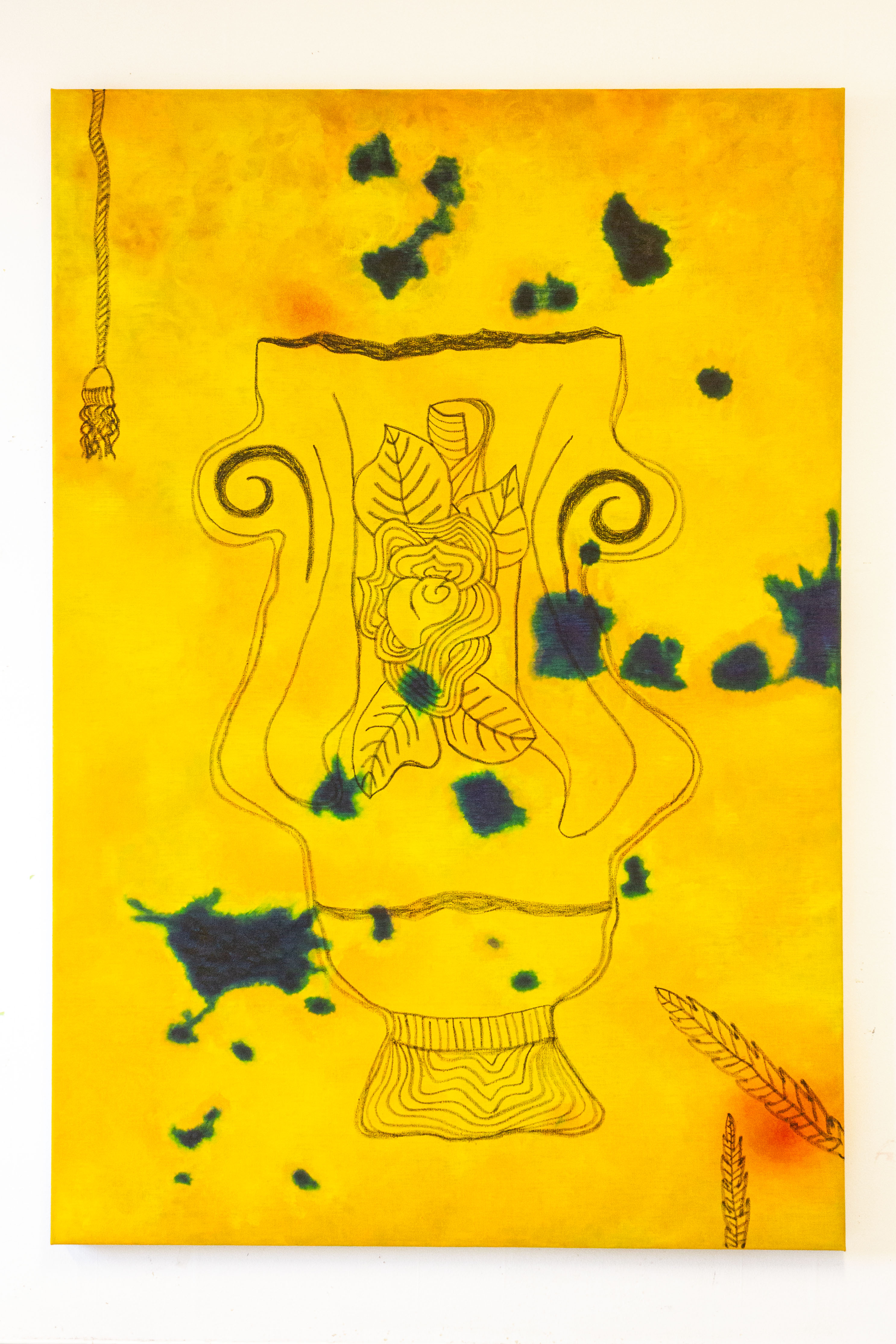 Surrealistic Pillow, 90 x 60 cm, oil, Indian ink on canvas, 2023 ©Lorie Bettiol