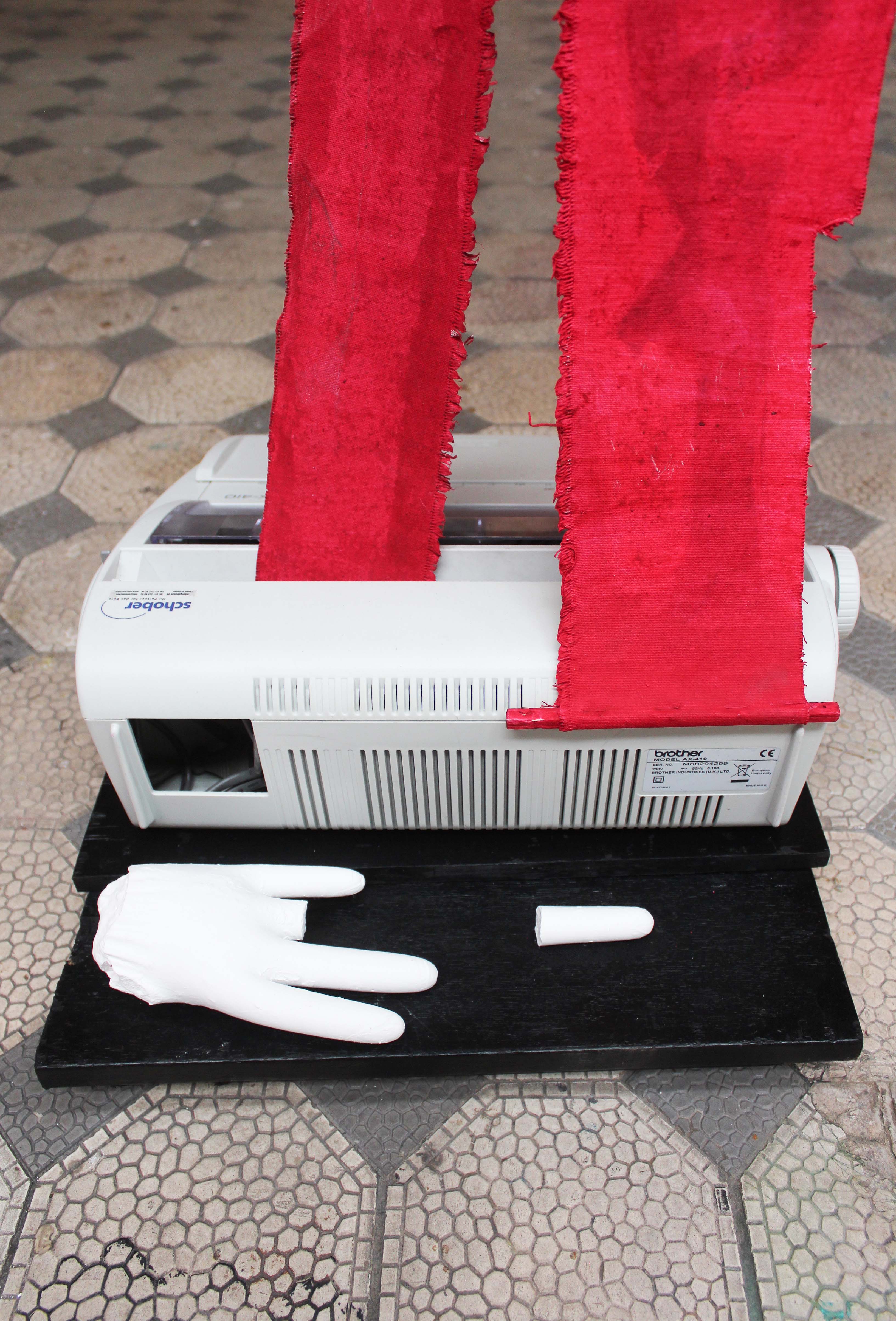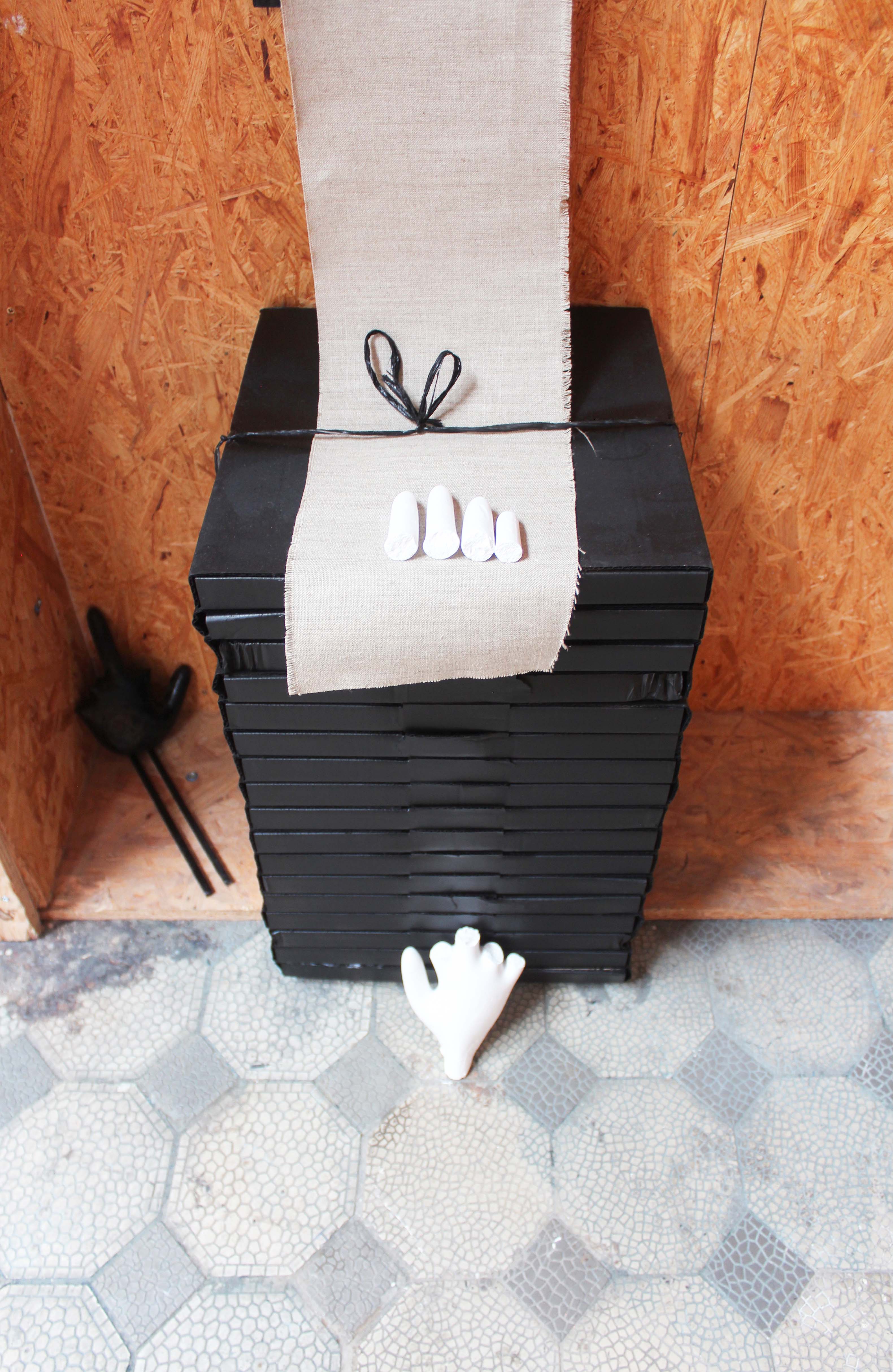 Acrobatic Painting, 500 x 600 x 800 cm, installation, oil on linen, canvas, wood, cardboard and paper, collected and painted objects, typed roll of canvas, spray on plaster and cardboard