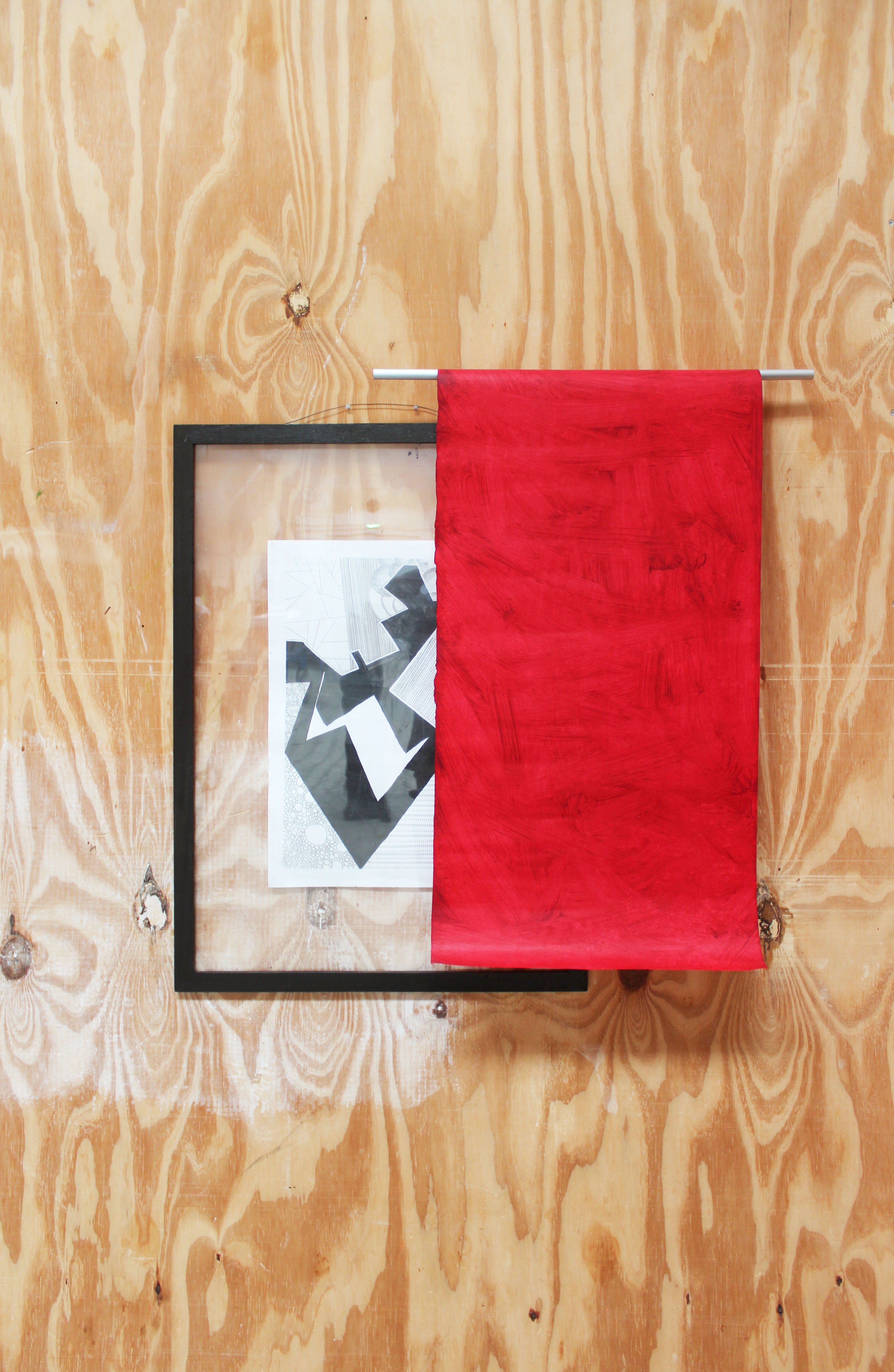 Untitled, variable dimensions, oil on paper and wooden frame, Plexiglas, Indian ink and graphite on paper, aluminium, nylon, 2020