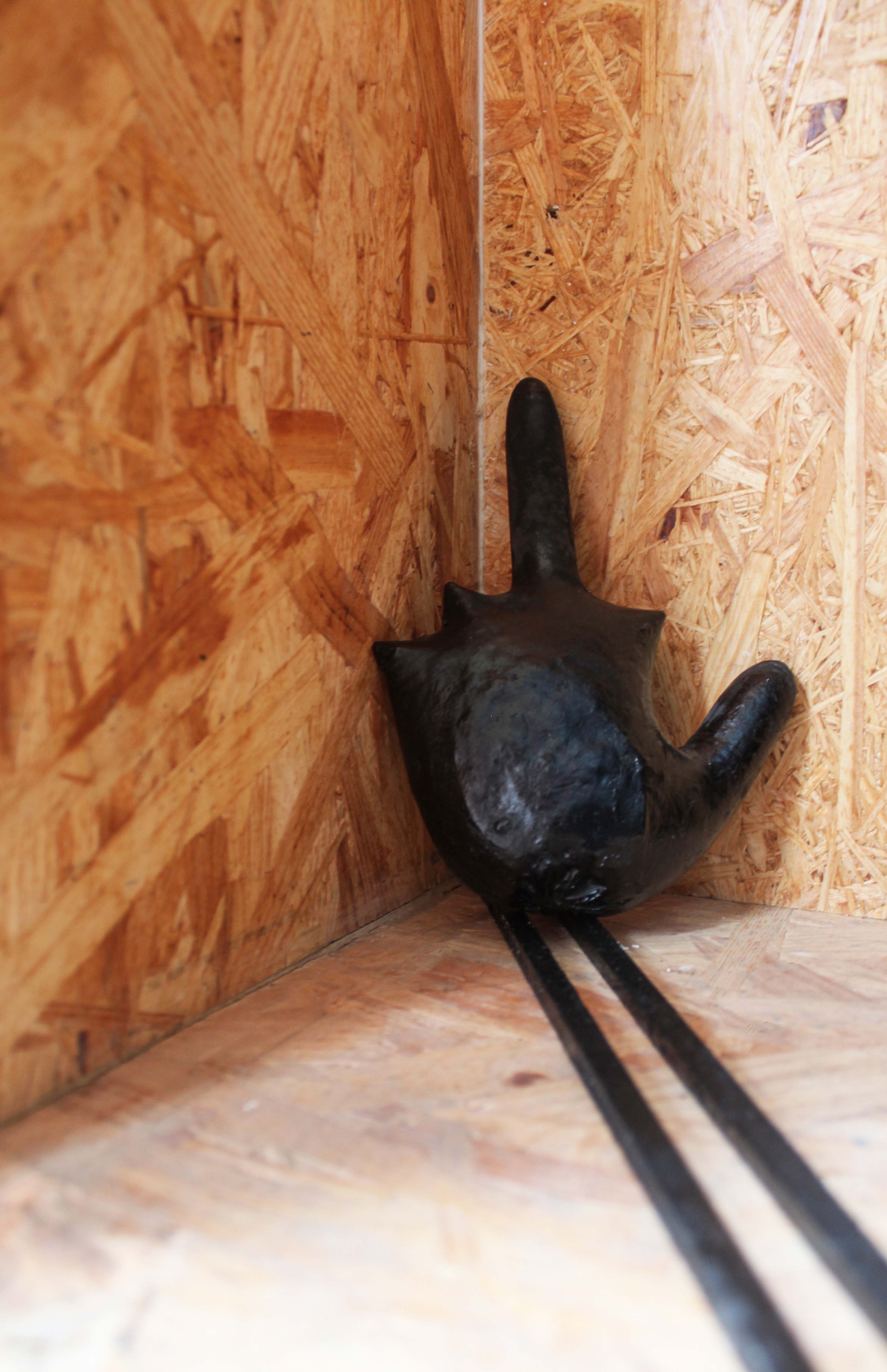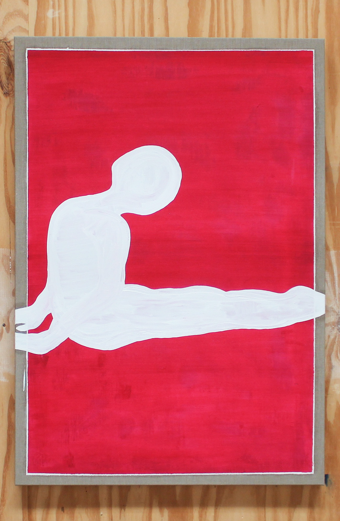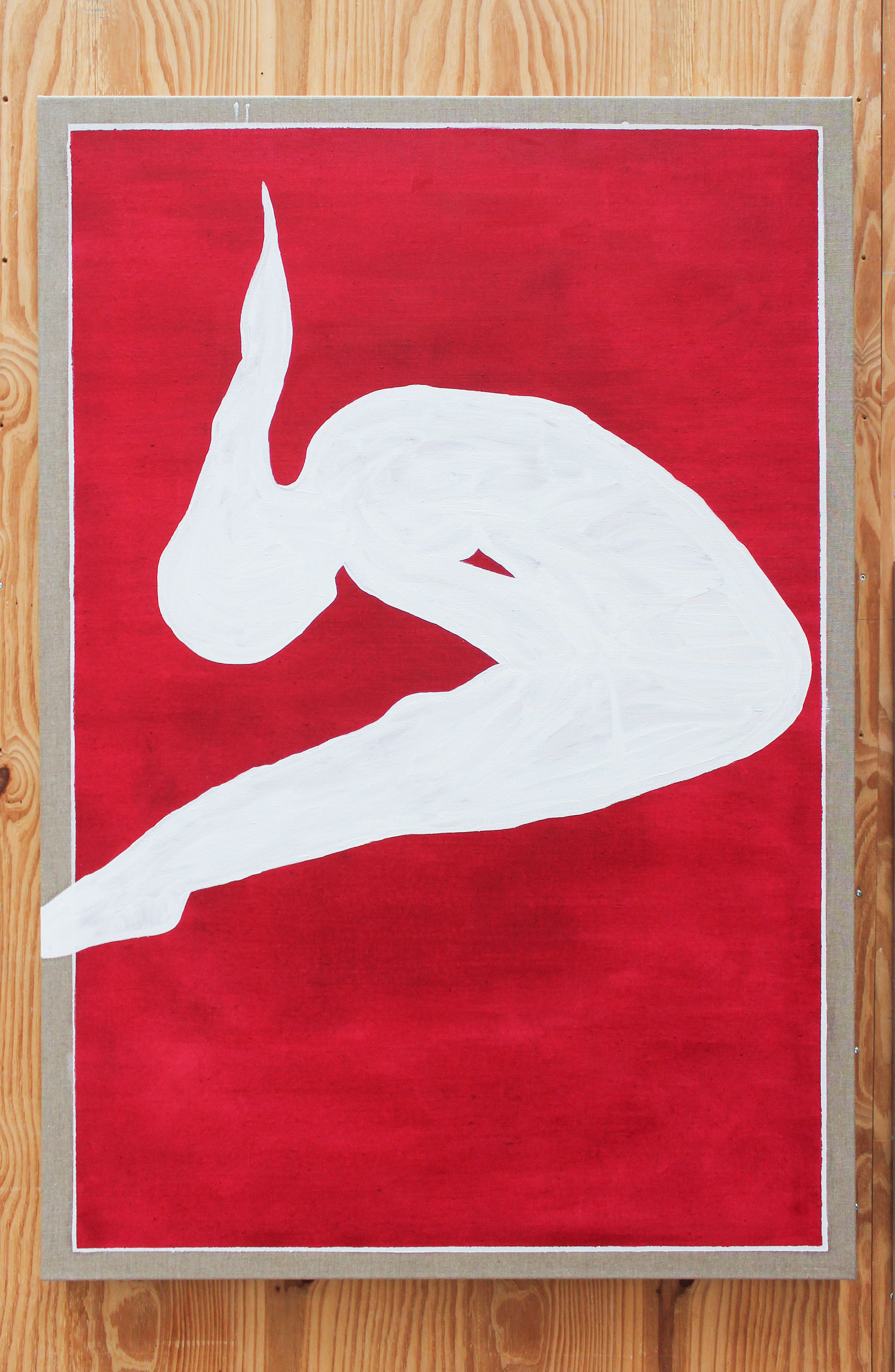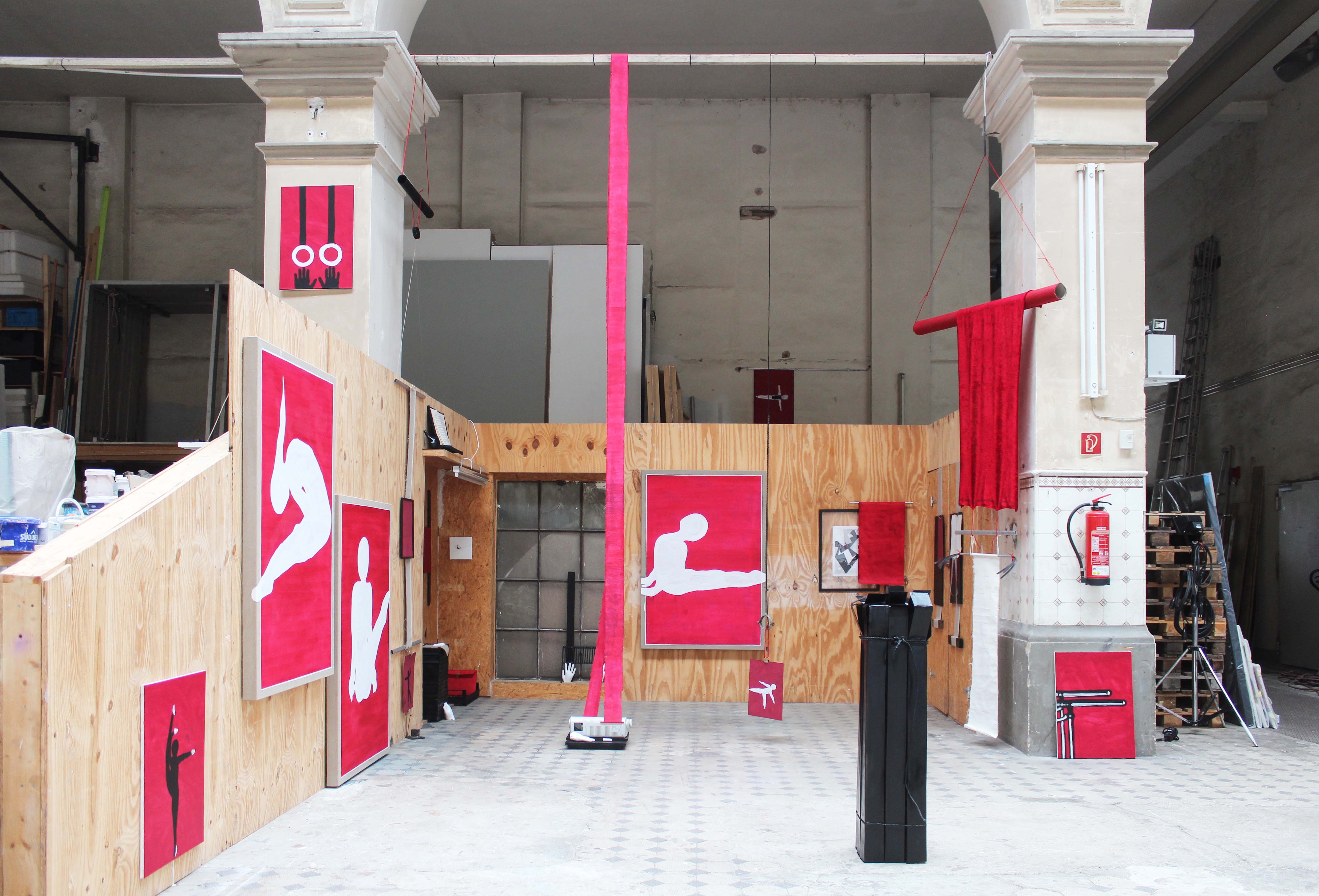 Exploring shapes and forms through observation of acrobats, gymnasts, and athletes, done in a series of paintings and drawings. The exploration is inspired by music listened to during lockdown. Several album covers that also depict human figures in absurd positions were used as models. During the opening night, a text oscillating between automatic writing and whimsical interpretation is performed by Selma Kahoul. Artefacts found and kept in the Kabuff (“storage room” in German) were collected over the months.
