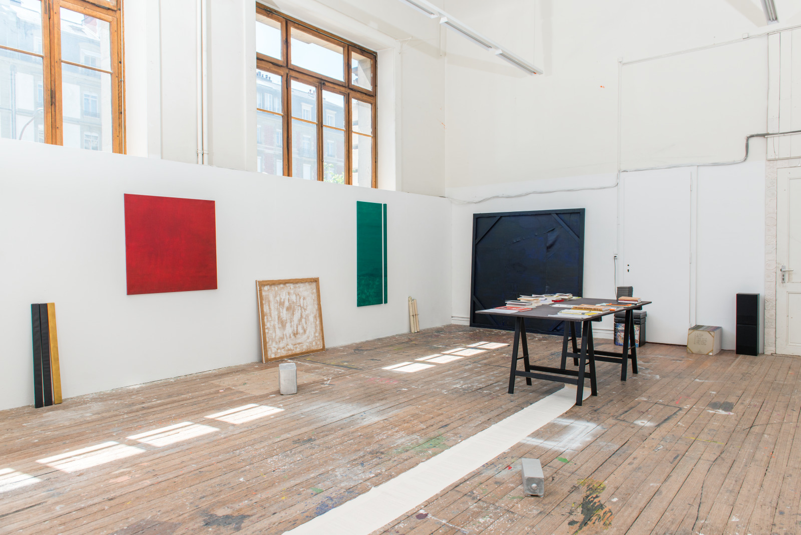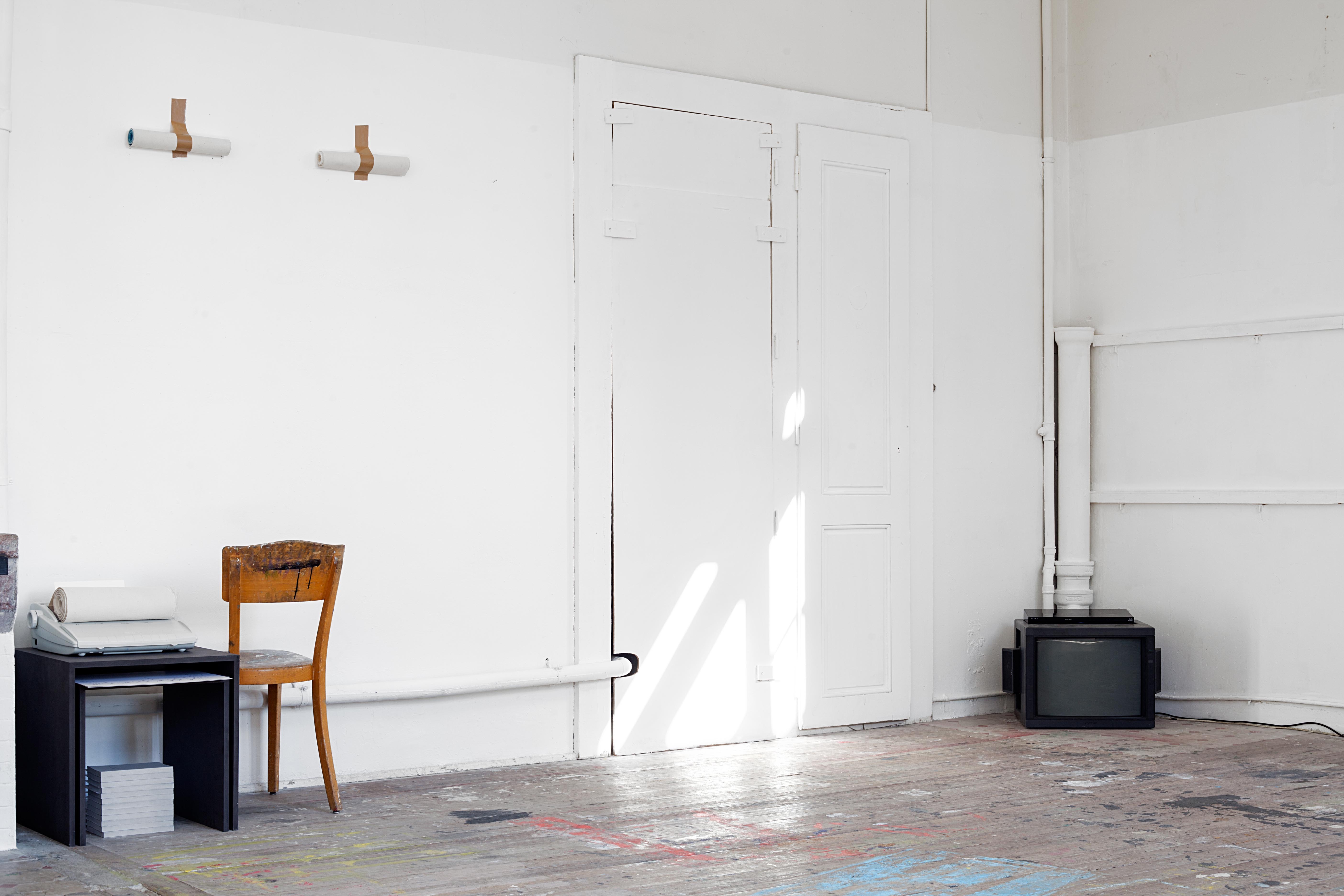 In a large, almost empty studio, the art work, paintings and furniture lean against the walls, backs to the audience. When the audience enters the room, a vinyl LP is playing on an old stereo. Then a list is read aloud, one item after the other.