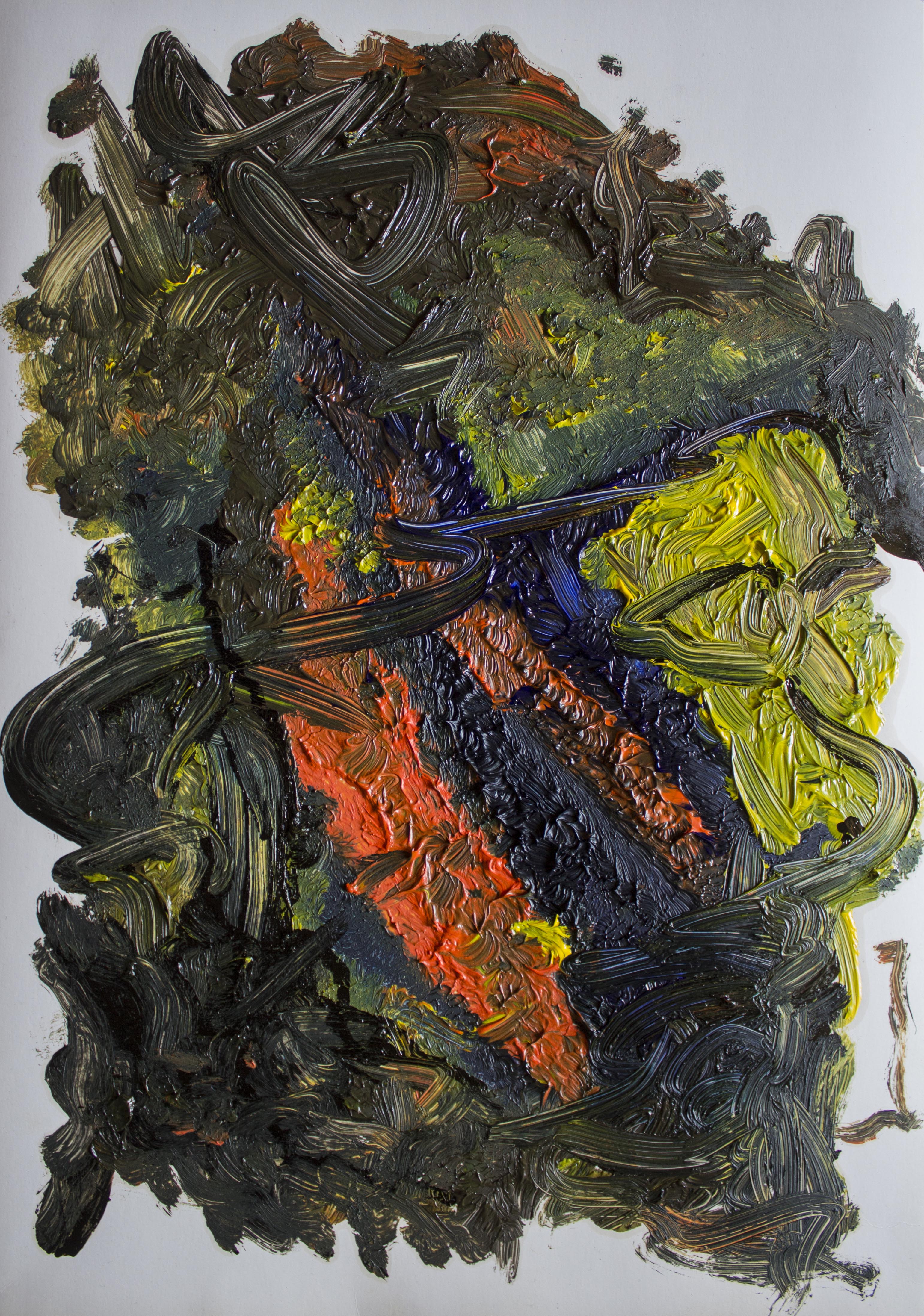 Atelier fermé 2 (face intriguée), 42 x 29.5 cm, oil on paper, 2017