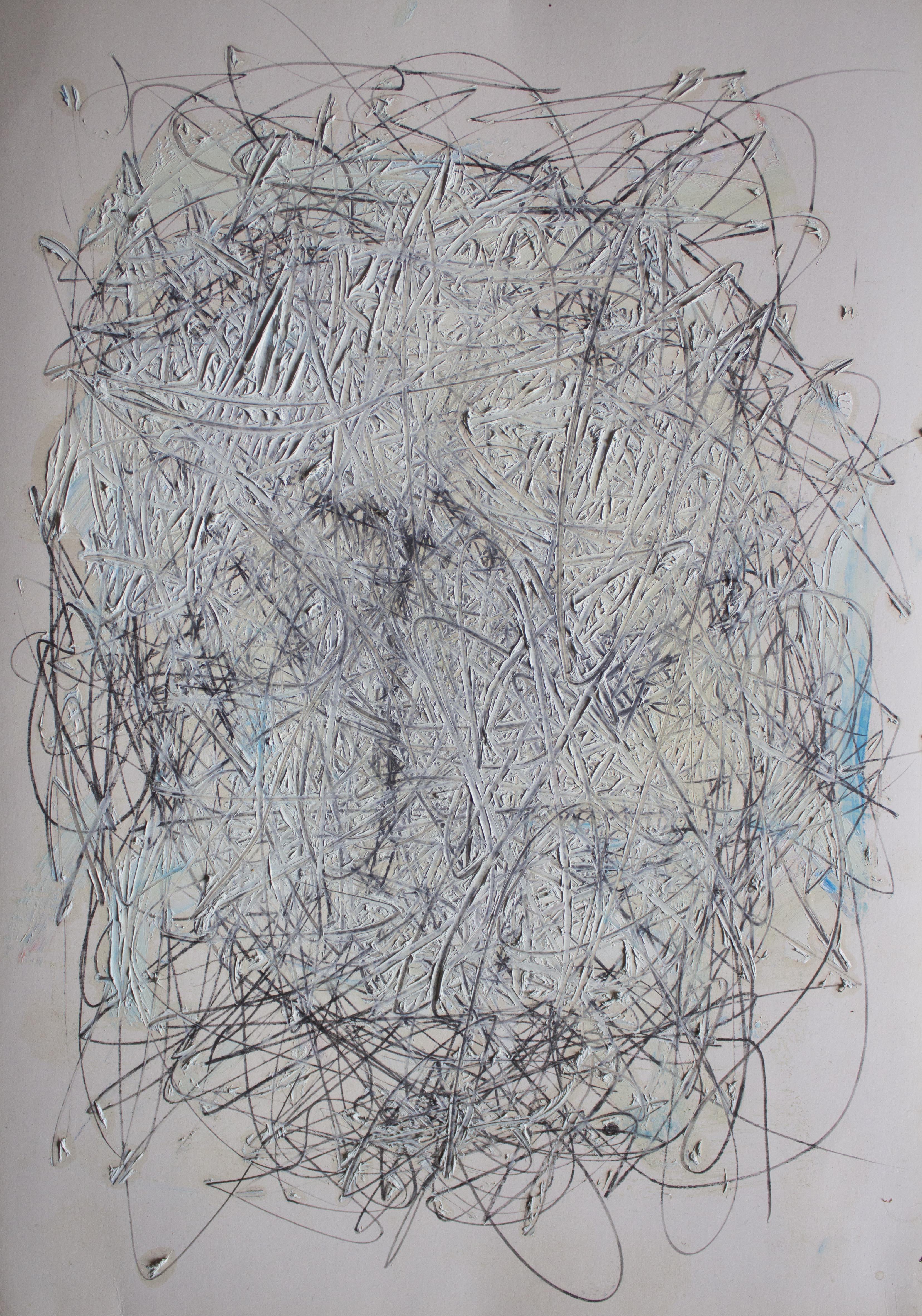 Atelier fermé 4 (face brouillée), 42 x 29.5 cm, oil and pencil on paper, 2017