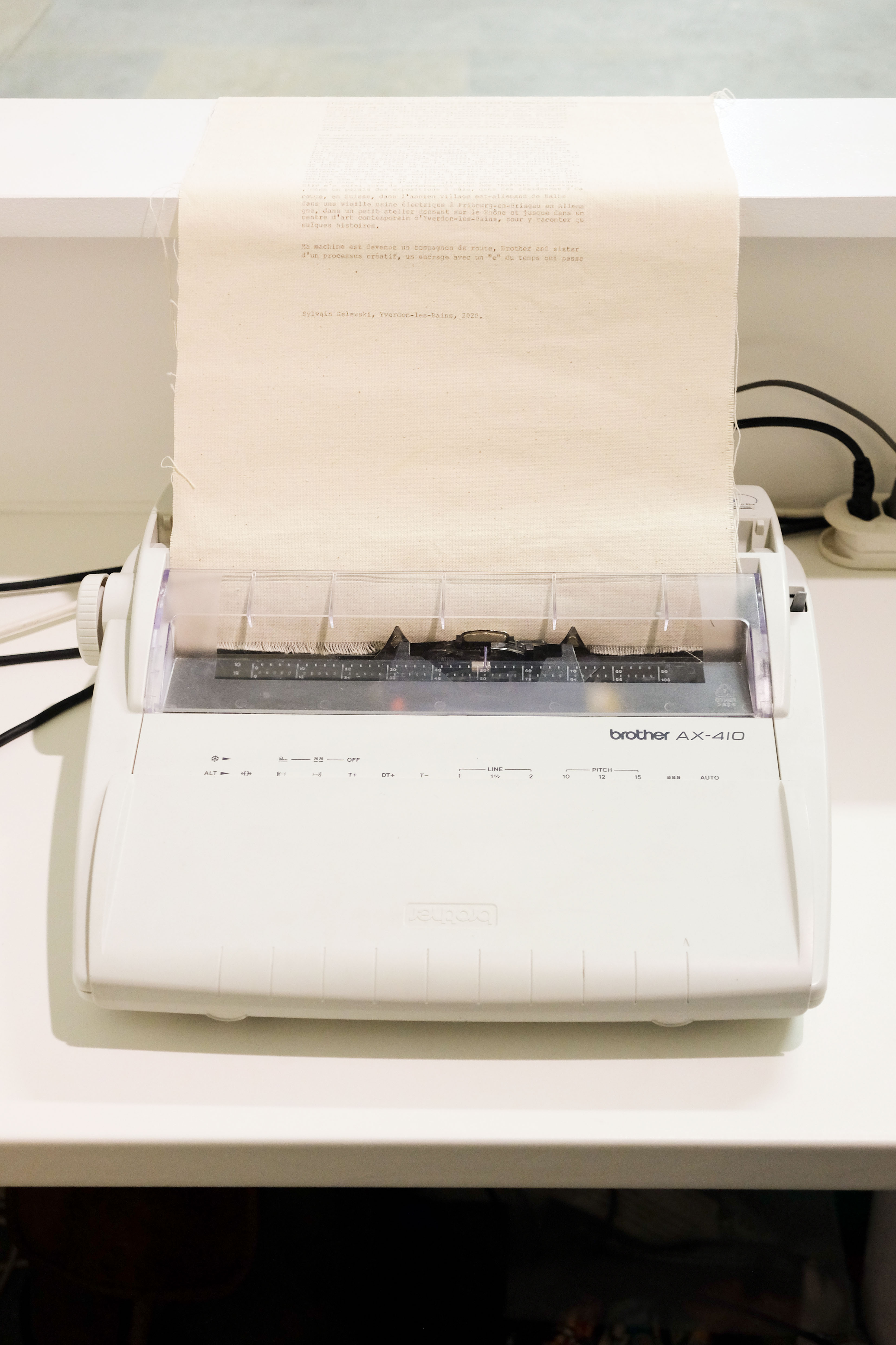 Brother and Sister, 30′, performance, typewriter on raw canvas roll, text, sound, 2020 ©Claude Cortinovis/Bradford Spencer