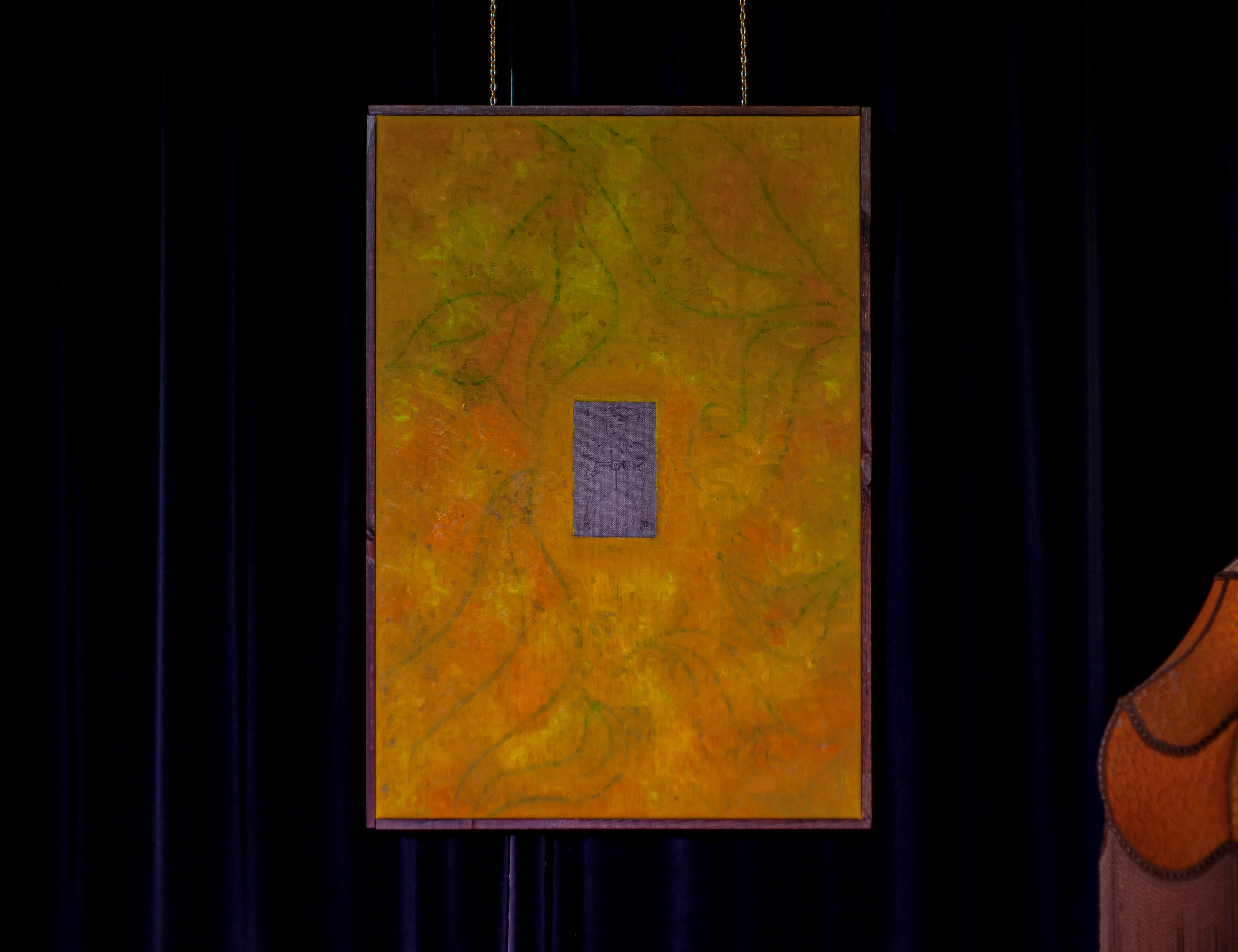 The Court Jester 7, 82 x 57 x 3.5 cm, oil, charcoal, ink on linen, walnut stain on wooden frame, Back Beat Bolaget, Sandviken, SE, 2023 ©Samael Törnberg